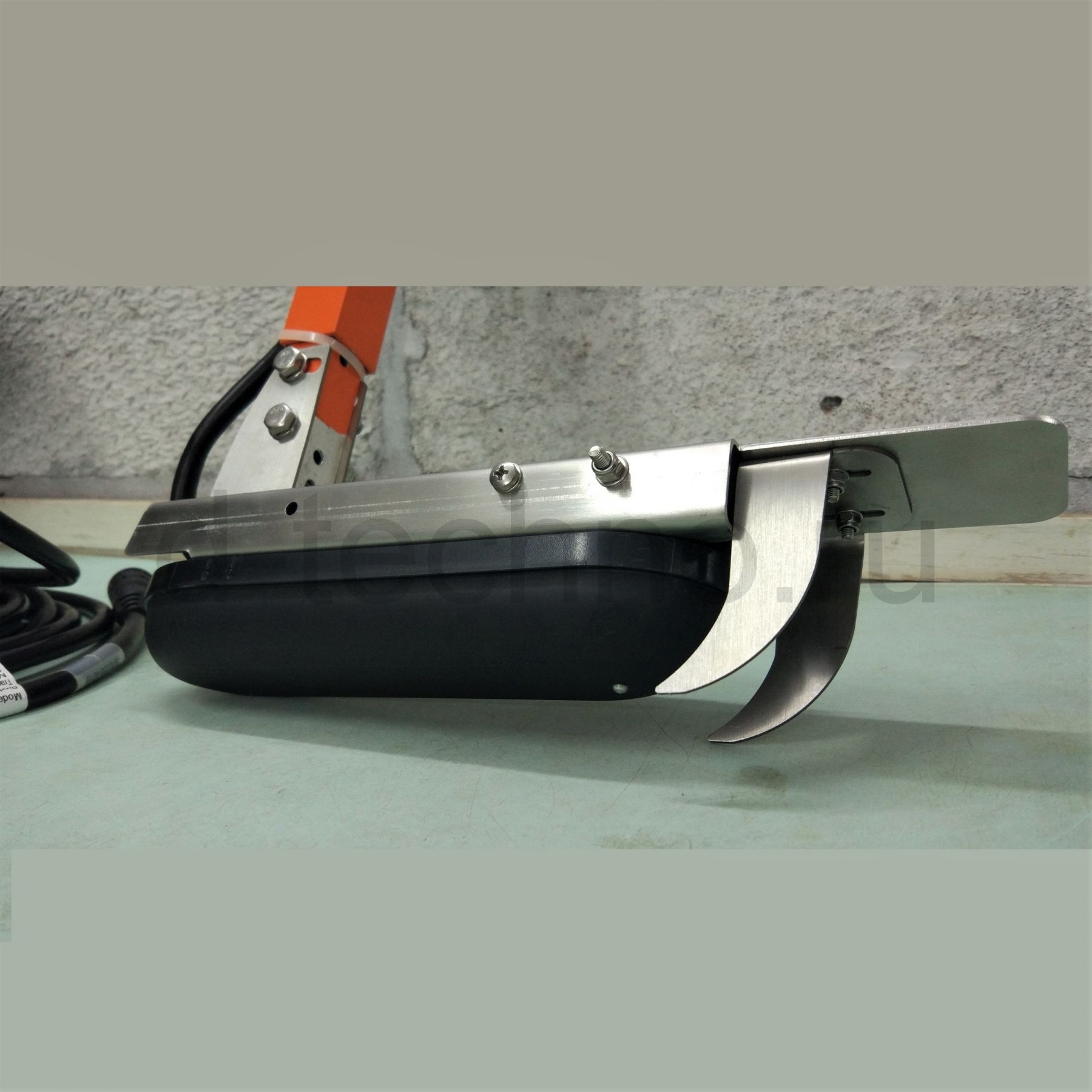 Крепление предназначено для установки датчика под дно лодки ПВХ с фиксацией носика в приклеенный карман.