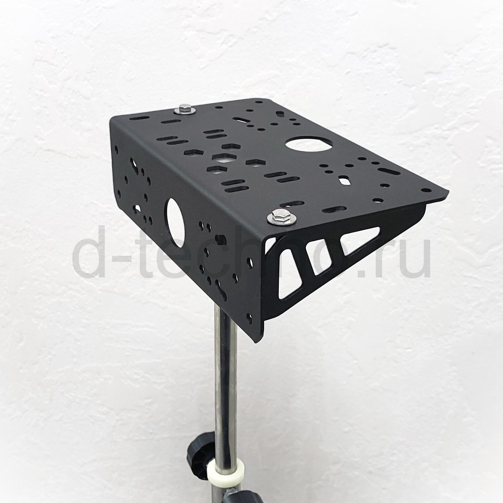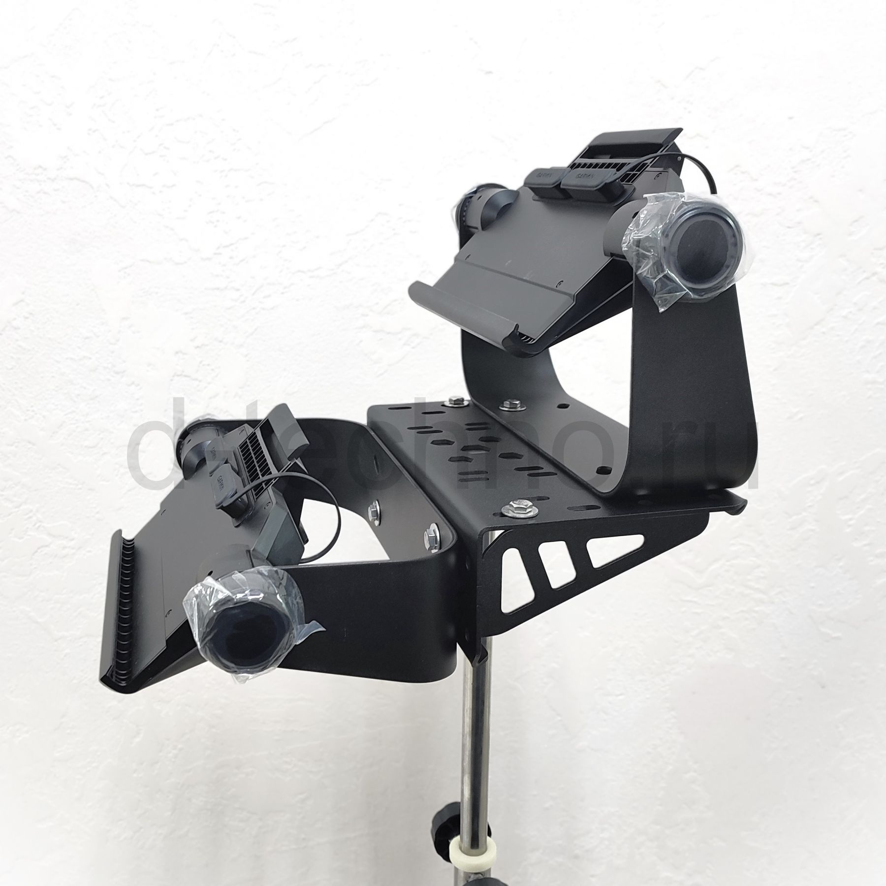 Прочный и жесткий кронштейн для крепления двух мониторов.