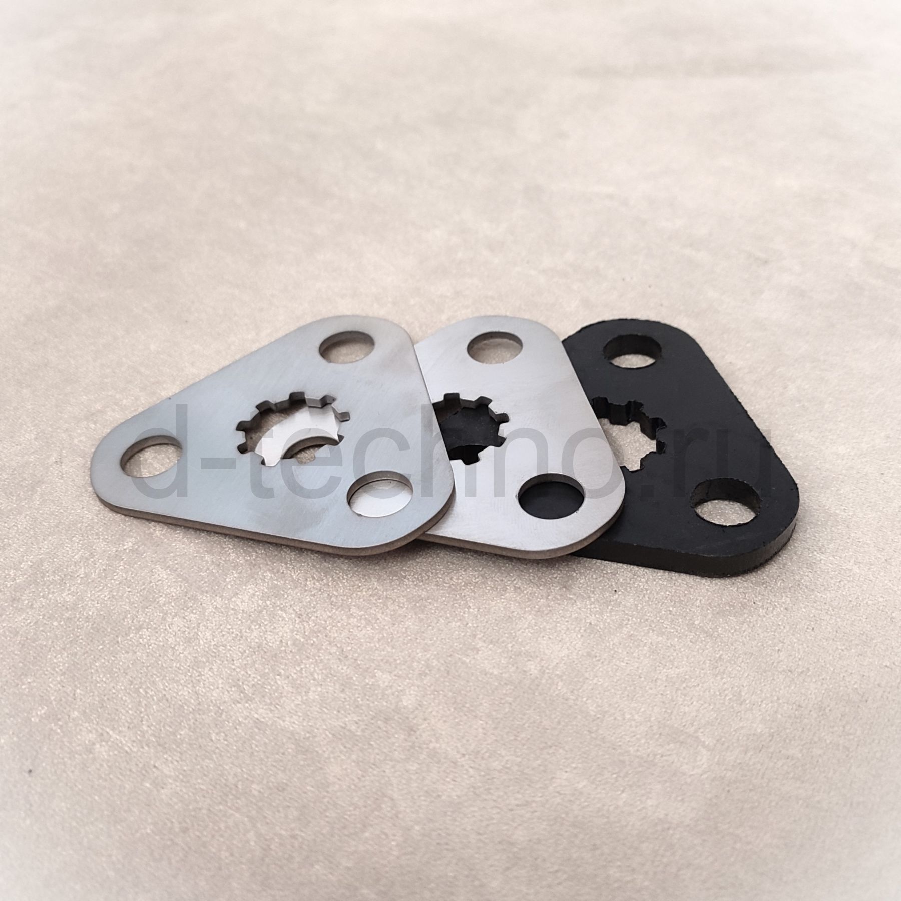 состоит из трех деталей, две пластины из нержавеющей стали и одна из пластика АБС