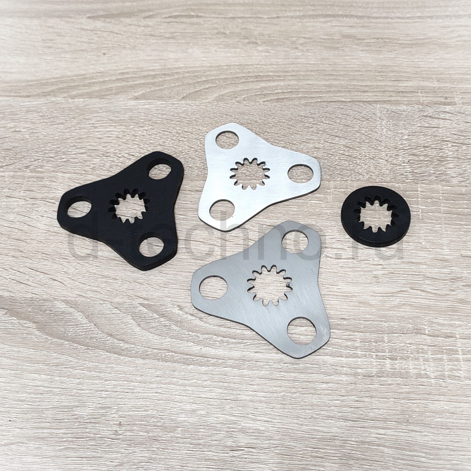 состоит из четырех деталей, две пластины из нержавеющей стали и две из пластика АБС